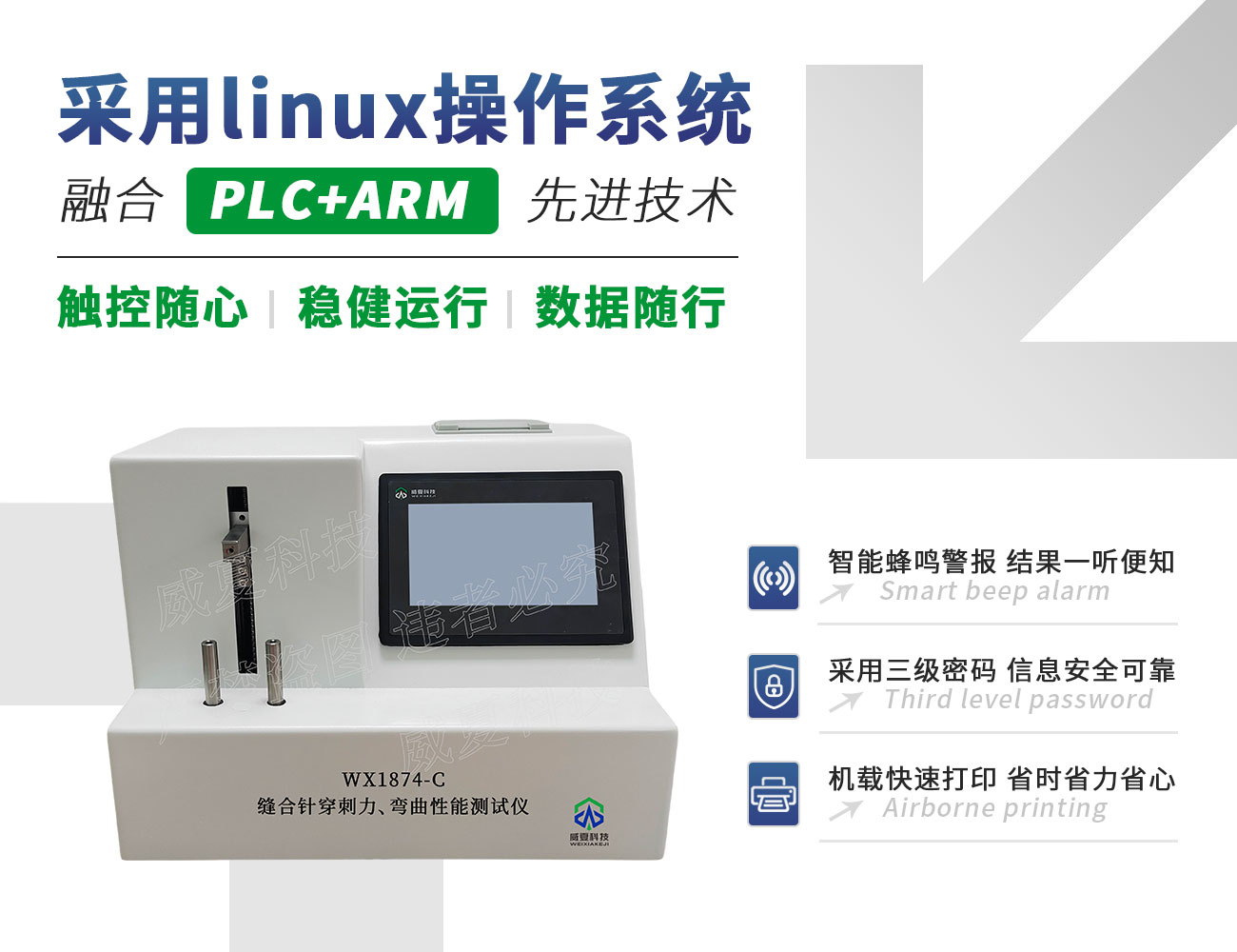 WX1874-C縫合針穿刺力、彎曲性能測試儀是專業(yè)用于檢驗(yàn)非血管內(nèi)導(dǎo)管耐液壓和真空泄漏性能的智能檢測設(shè)備,并廣泛應(yīng)用于醫(yī)療器械生產(chǎn)企業(yè)、檢測所、第三方檢測機(jī)構(gòu)、研究院、科研院校、各大高校、醫(yī)療器械研發(fā)單位等實(shí)驗(yàn)室。