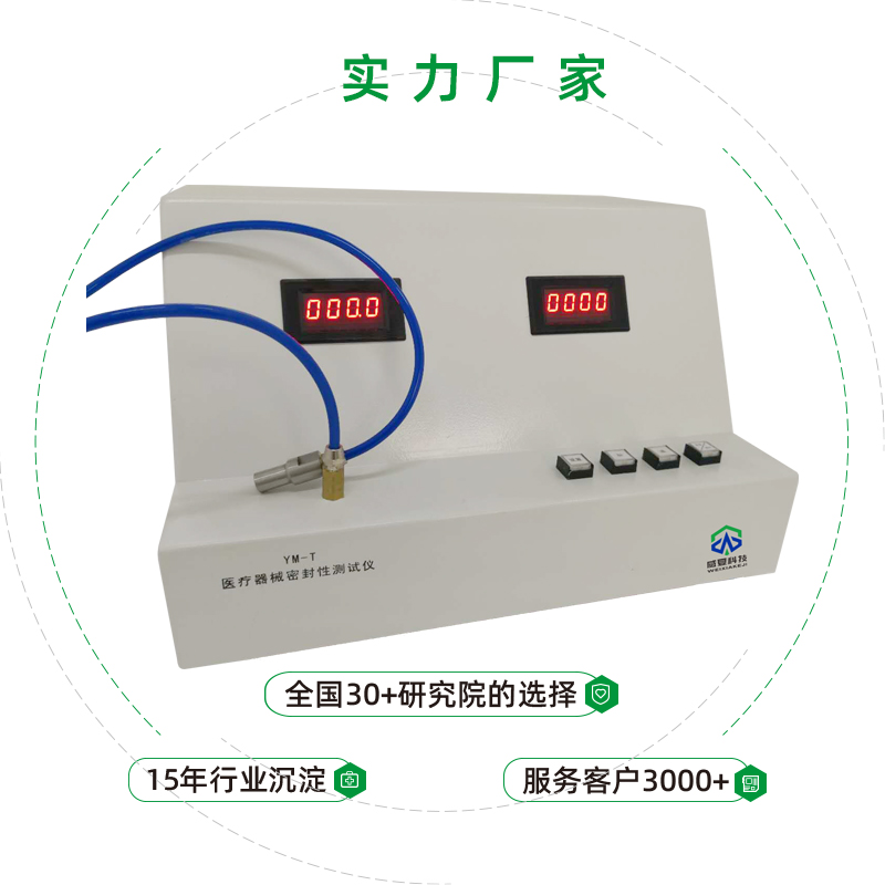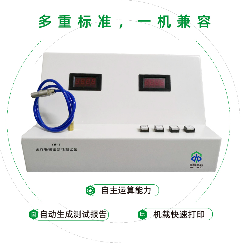 YM-T醫(yī)療器械密封性測試儀采用PLC可編程控制器、壓力傳感器、控制機(jī)構(gòu)等組成,操作方便。實時顯示壓力值、保持時間,自動結(jié)束測試。